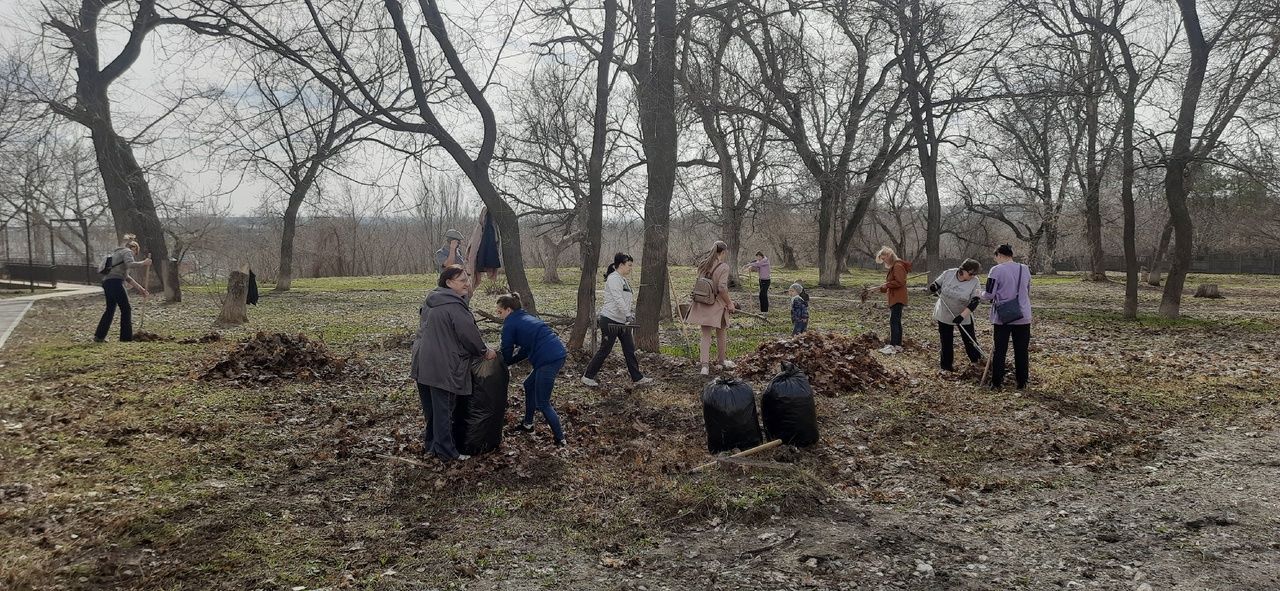 Участники субботника убирали бытовой мусор, накопившейся за зимний период, сухую листву, сломанные ветки.