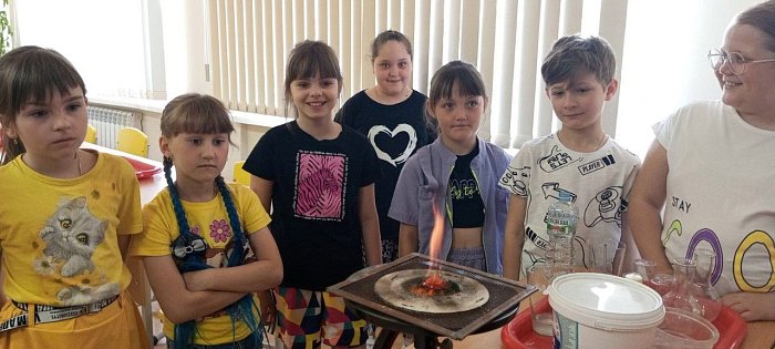 Воспитанники летней досугово-игровой площадки «Радуга» на базе школы № 3 им. В.Н. Щеголева посетили «Тайную комнату химической страны».