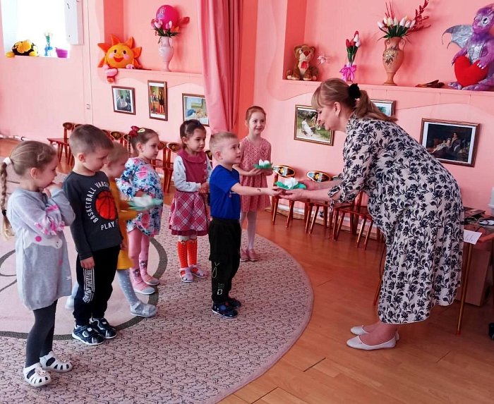 В преддверии 8 марта воспитанники детского сада "Светлячок" вручили сотрудникам детского сада открытки, сделанные своими руками, и порадовали теплыми, добрыми пожеланиями.