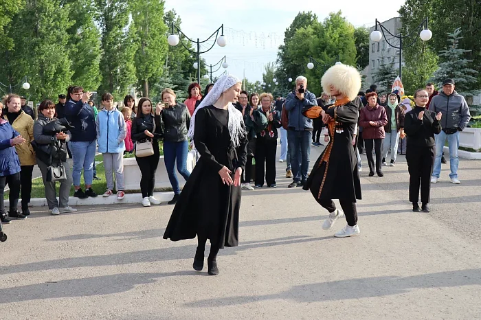 Продолжила праздник концертная программа. В сквере «У фонтана» звучали песни о России, хореографические коллективы представили танцевальные композиции, отражающие самобытность разных народов, населяющих нашу страну, а представители казачества продемонстрировали мастерство фланкировки.